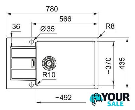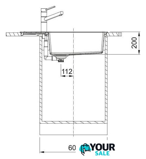врезная на столешницу, искусственный камень, размеры: 78x43.5 см, в шкаф 60 см