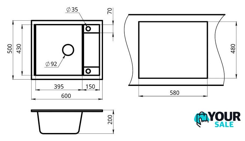 врезная на столешницу, искусственный камень, размеры: 60x50 см, в шкаф 50 см