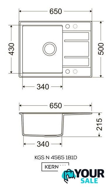 врезная на столешницу, искусственный камень, размеры: 65x50 см, в шкаф 45 см