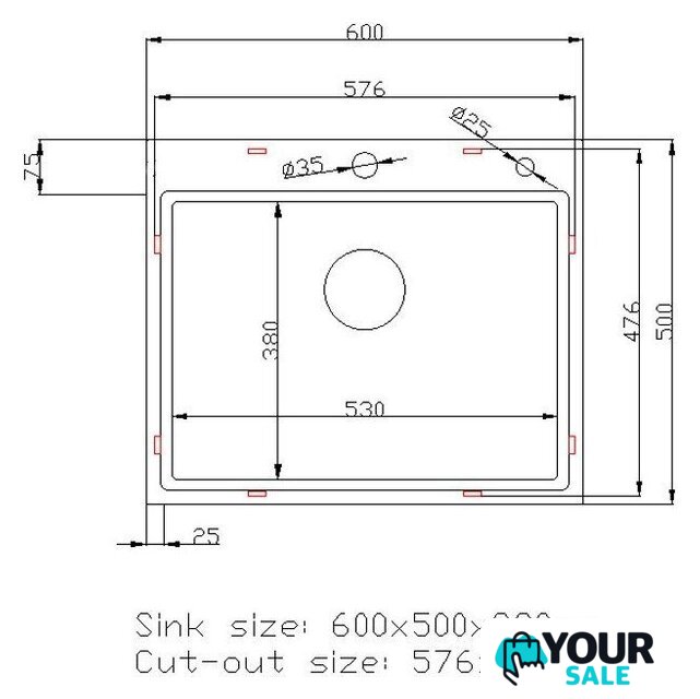| Длина мойки | 60 см |