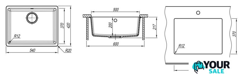 врезная на столешницу/врезная под столешницу, искусственный камень, размеры: 54x42 см, в шкаф 60 см