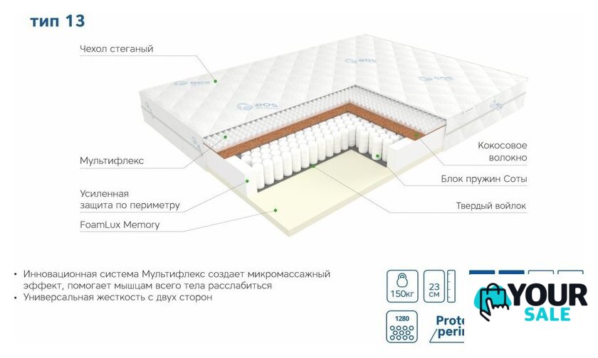 | Жёсткость | среднемягкий, средний, среднежёсткий |