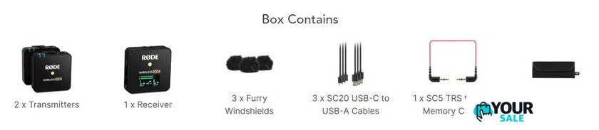 | Комплект поставки | - приемник- два передатчика- съемная ветрозащита- аудиокабель (3.5 мм - 3.5 мм)- три USB-кабеля для зарядки (USB Type-C - USB Type-A)- чехол- документация |