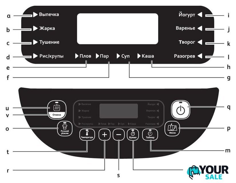 | Перечень режимов работы | Ручной режим;Выпечка;Обжарка/корочка;Тушение;Приготовление на пару;Рис/крупы;Плов;Творог;Каша;Йогурт;Варенье;Суп. |