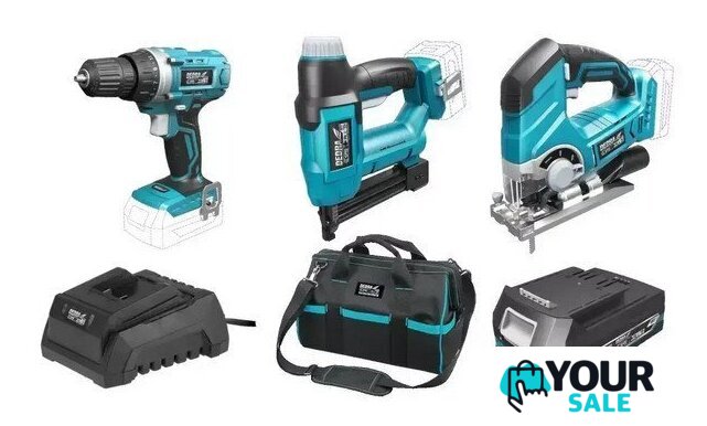 | Состав набора | дрель-шуруповерт, лобзик, скобозабиватель |