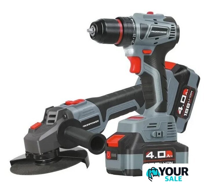 | Состав набора | дрель-шуруповерт, угловая шлифовальная машина |