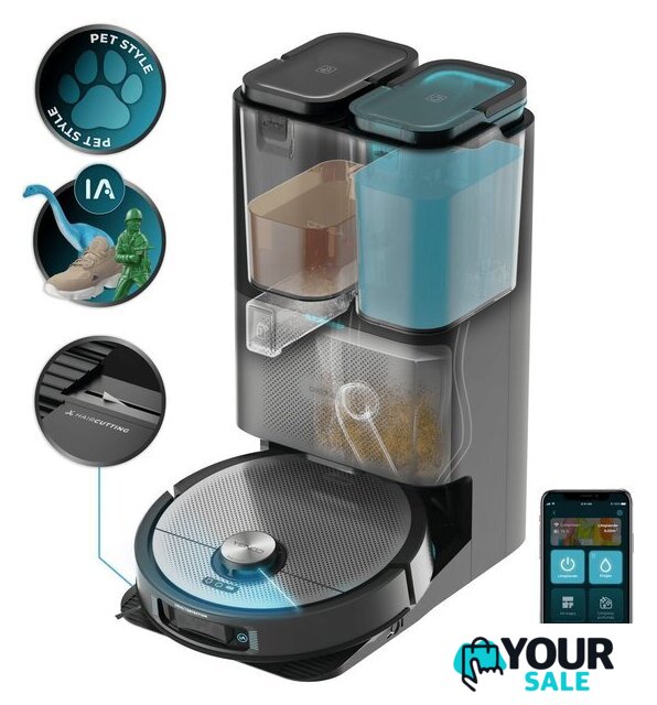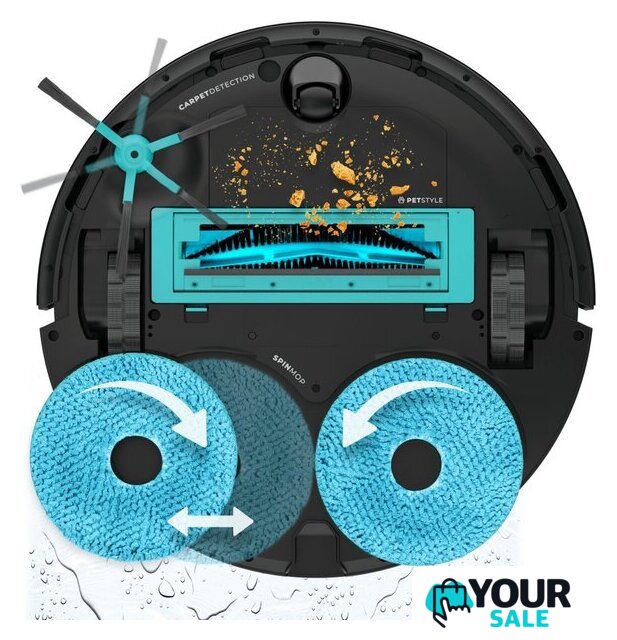 | Комплектация | база самоочистки; боковая щетка; щетка мультифункциональная; вращающиеся швабры; бутылка для моющего средства; мешок для пыли |