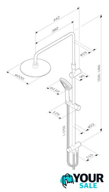 | Вылет верхнего душа | 442 мм |
