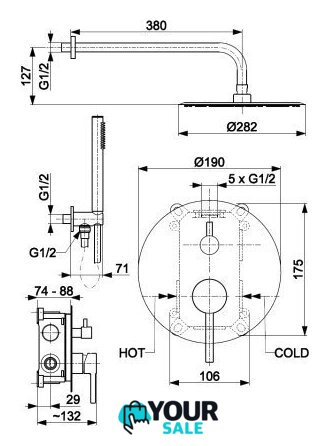 | Диаметр (ширина) верхнего душа | 282 мм |