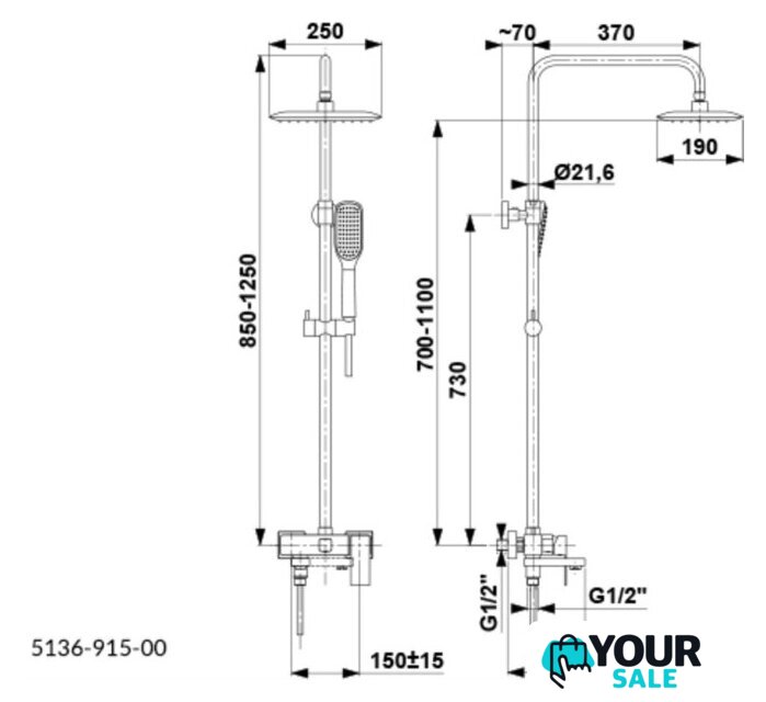 | Комплектация | верхний душ, штанга, ручной душ (лейка), держатель лейки, шланг, смеситель, излив для ванны |