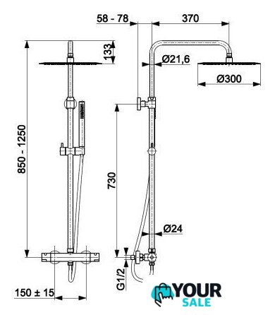 | Диаметр (ширина) верхнего душа | 300 мм |