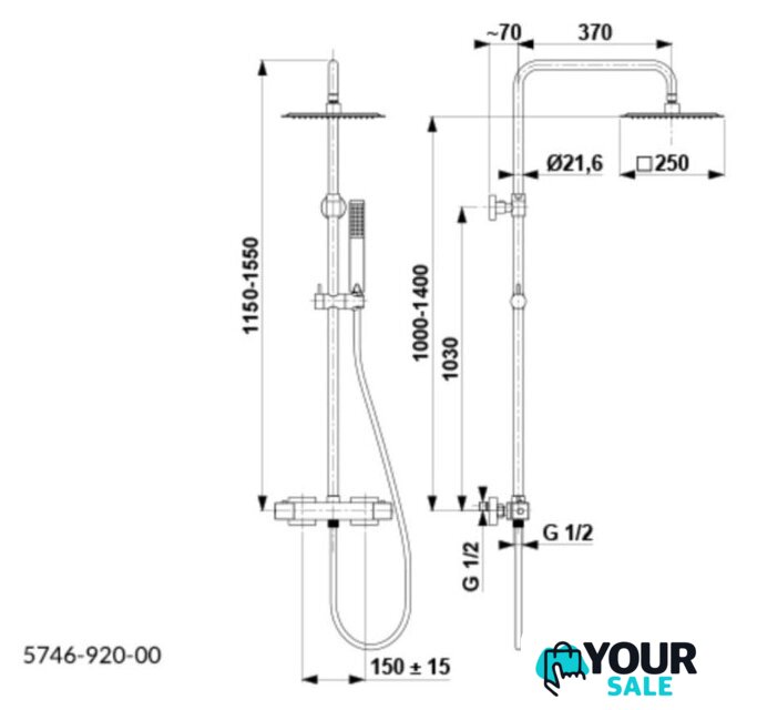 | Диаметр (ширина) верхнего душа | 250 мм |