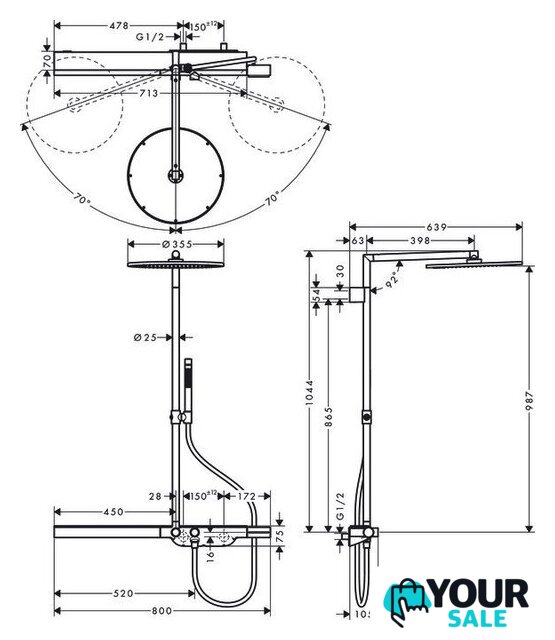 | Диаметр (ширина) верхнего душа | 355 мм |