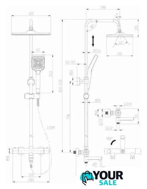 | Комплектация | верхний душ, штанга, ручной душ (лейка), держатель лейки, шланг, смеситель, излив для ванны |