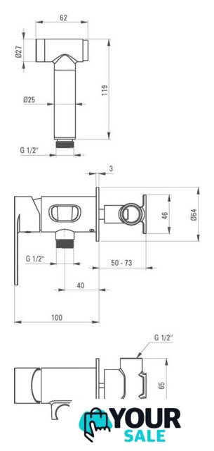 | Комплектация | держатель лейки, шланг, смеситель, гигиенический душ (лейка) |