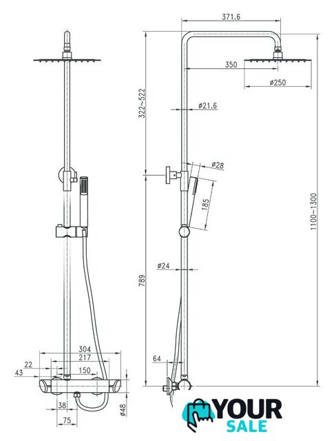 | Диаметр (ширина) верхнего душа | 250 мм |
