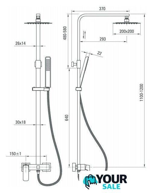 | Диаметр (ширина) верхнего душа | 200 мм |