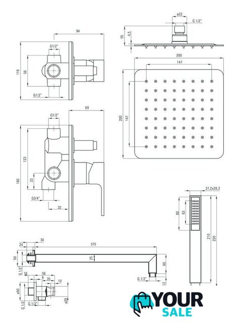 | Диаметр (ширина) верхнего душа | 200 мм |