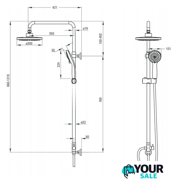 | Диаметр (ширина) верхнего душа | 200 мм |