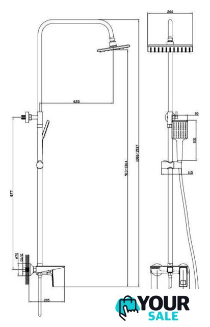 | Комплектация | верхний душ, штанга, ручной душ (лейка), держатель лейки, шланг, смеситель, излив для ванны |