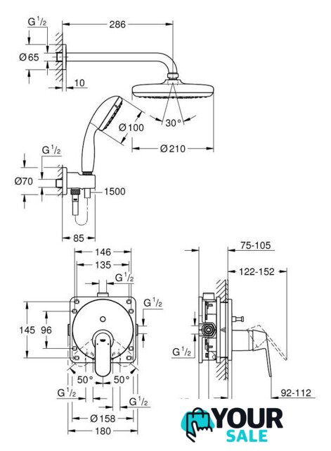| Диаметр (ширина) ручного душа | 100 мм |