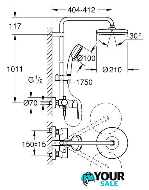 | Вылет верхнего душа | 404 мм |