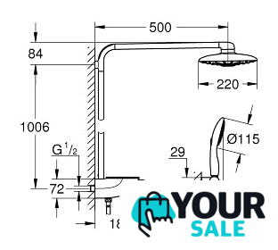 | Вылет верхнего душа | 500 мм |