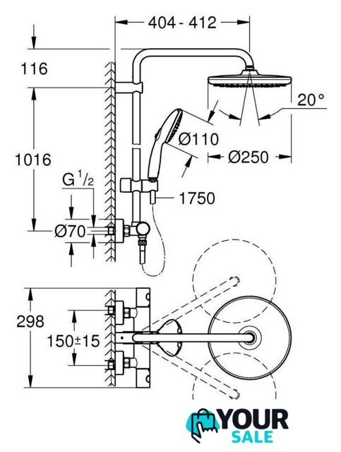| Вылет верхнего душа | 404 мм |