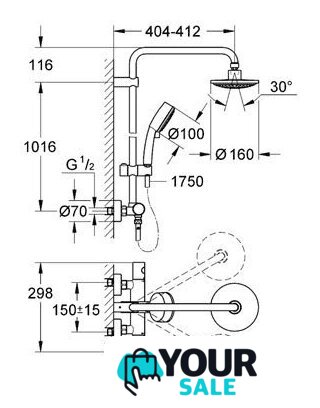 | Диаметр (ширина) верхнего душа | 160 мм |