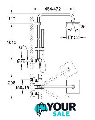| Диаметр (ширина) верхнего душа | 152 мм |