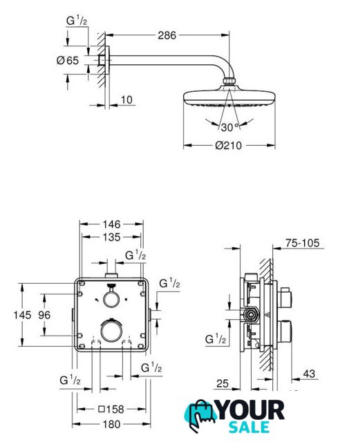 | Диаметр (ширина) верхнего душа | 210 мм |