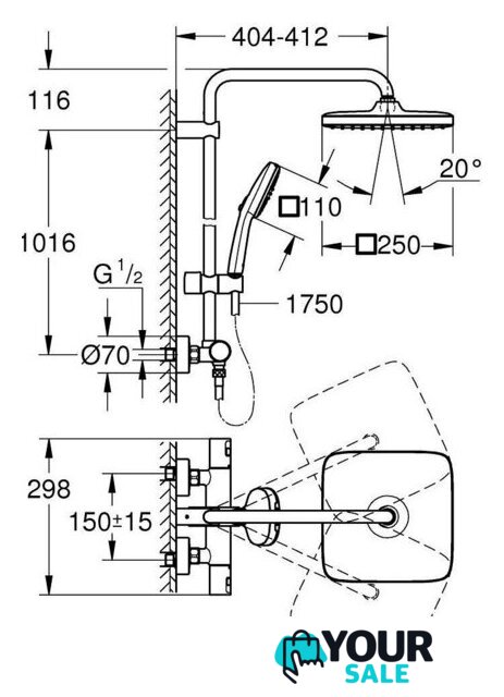 | Вылет верхнего душа | 404 мм |