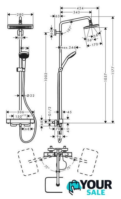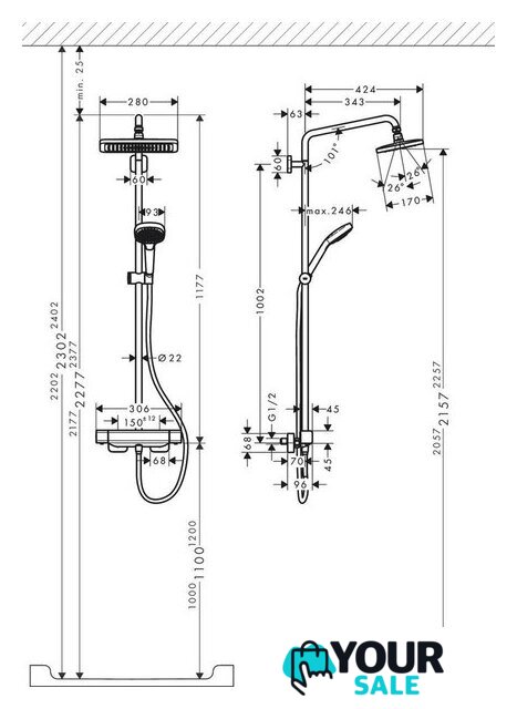 | Серия | Croma E Showerpipe 280 1jet (Hansgrohe) |