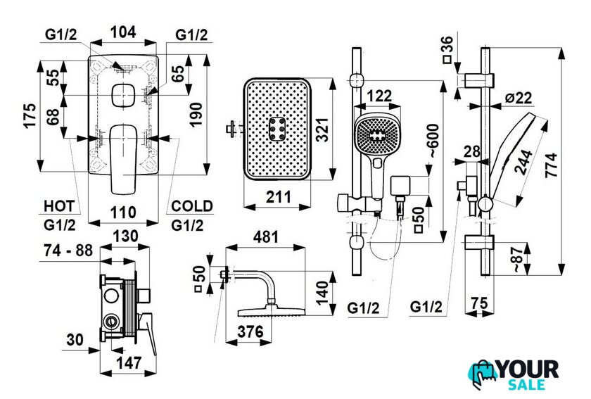 | Комплектация | штанга, ручной душ (лейка), шланг, смеситель |