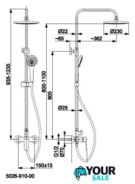 | Диаметр (ширина) верхнего душа | 230 мм |