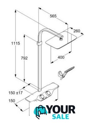 | Комплектация | верхний душ, ручной душ (лейка), держатель лейки, шланг, смеситель, полочка |
