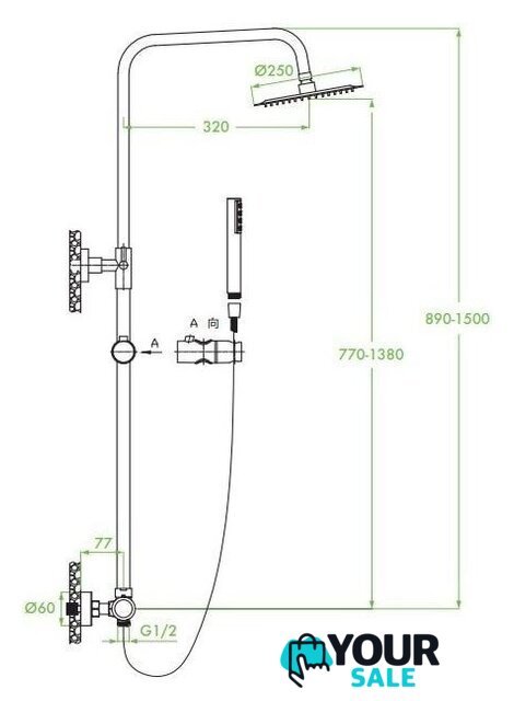 | Комплектация | верхний душ, штанга, ручной душ (лейка), держатель лейки, шланг, смеситель |