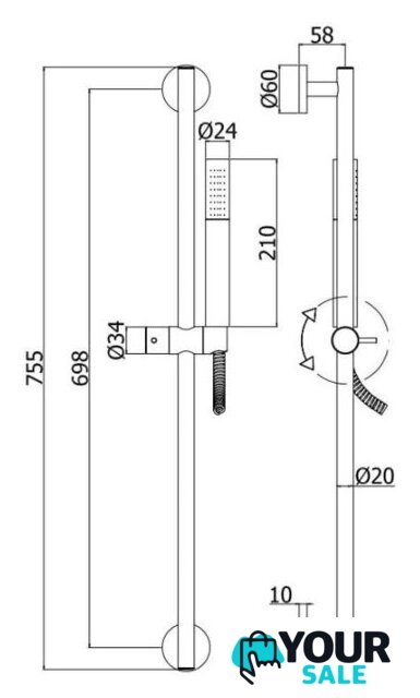 | Диаметр (ширина) ручного душа | 24 мм |