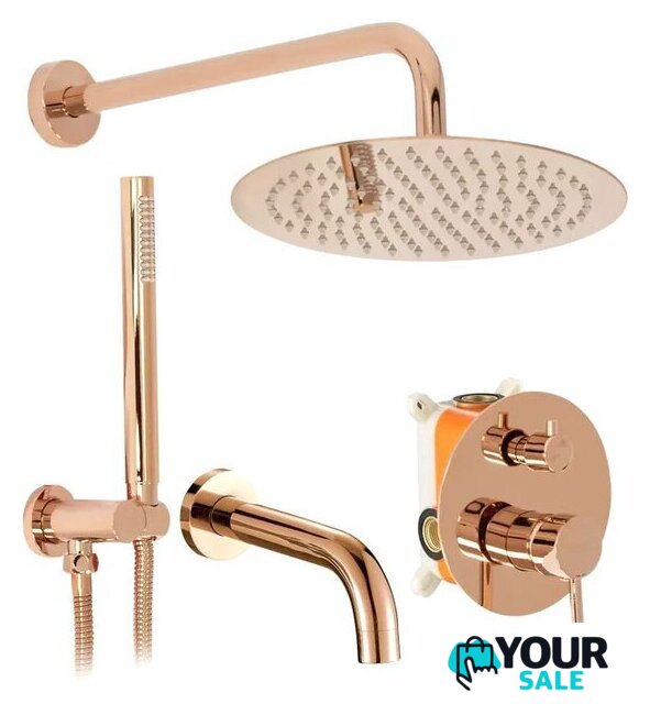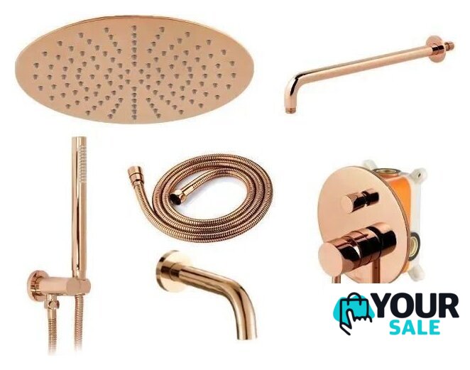 | Комплектация | верхний душ, ручной душ (лейка), держатель лейки, шланг, смеситель, излив для ванны |
