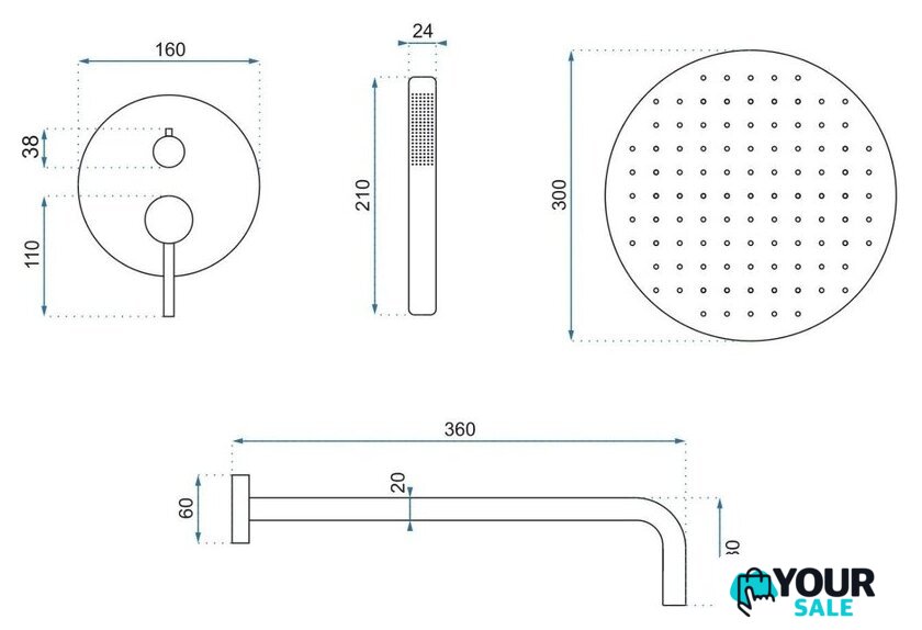 | Диаметр (ширина) верхнего душа | 300 мм |
