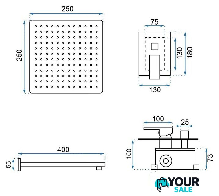 | Диаметр (ширина) верхнего душа | 250 мм |