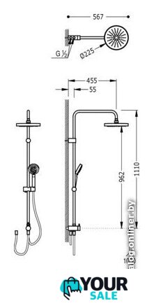 | Диаметр (ширина) верхнего душа | 225 мм |