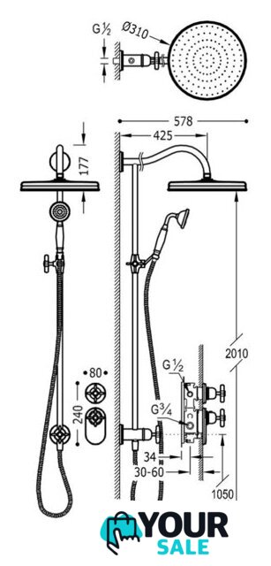 | Диаметр (ширина) верхнего душа | 310 мм |