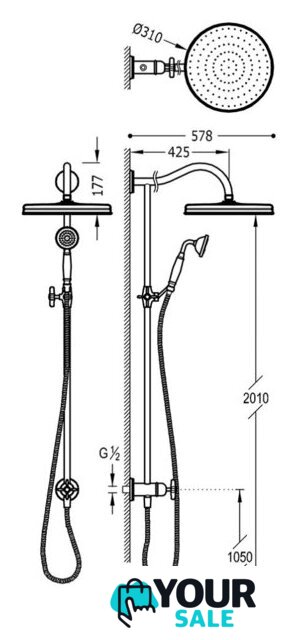 | Диаметр (ширина) верхнего душа | 310 мм |
