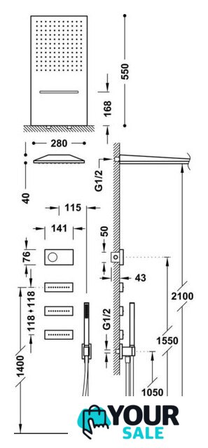 | Диаметр (ширина) верхнего душа | 280 мм |