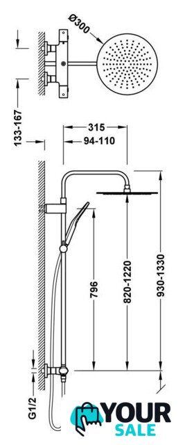 | Диаметр (ширина) верхнего душа | 300 мм |