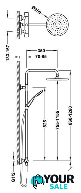 | Диаметр (ширина) верхнего душа | 250 мм |