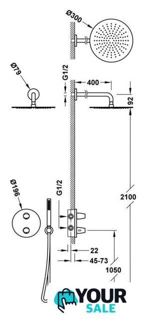 | Диаметр (ширина) верхнего душа | 300 мм |