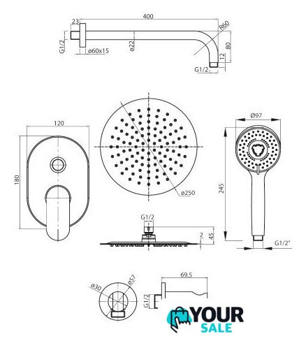| Диаметр (ширина) верхнего душа | 250 мм |