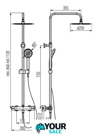 | Диаметр (ширина) верхнего душа | 250 мм |
